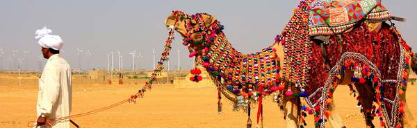 Afternoon we visit the old town of Jaisalmer & visit Jaisalmer Fort, built in the year 1156 by Rawal Jaisal. Perched on 80m high hill, housing the entire township within its ramparts, the golden hued Fort is standing like a sentinel in the bleak desert landscape. It is the only "Living Fort" in India & within its ramparts has an enchanting cow-web of narrow lanes dotted with some lovely Havelis (Mansions), Palaces & beautifully sculptured Jain Temples of the 12th-15th century AD & of course skilled artisans & ubiquitous camels.